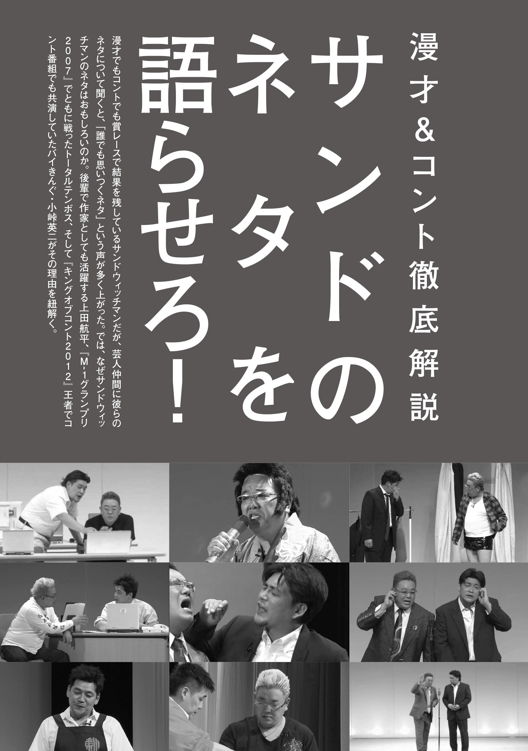 中川家・永野・じゅんいちダビッドソン・U字工事・あぁ~しらき・狩野英孝・鬼越トマホーク・わらふぢなるお・カミナリ・東京ホテイソン・ティモンディ・佐々木莉佳子(アンジュルム)など、関係者の証言で構成する<サンドウィッチマン20年の足跡>ではこれまで語られることのなかった新しい「お笑い史」を浮き彫りにし、バイきんぐ小峠英二・トータルテンボス・上田航平(元ゾフィー)らは<サンドウィッチマンの傑作ネタ>を解説。