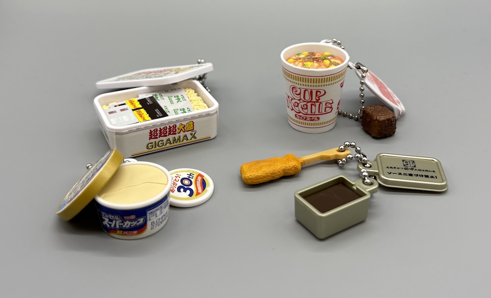 こちらは食べ物系のガチャ。中までリアルに作られていて、開けたりすることができる。実際自分が好きな商品だったり、リアルに再現されているものを回すことが多い。付属で具材のチャームやかやくなどもついている。