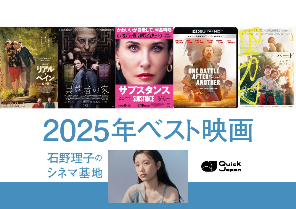 第13回は年末特別編として、石野がセレクトした2025年ベスト映画を部門別で一挙大発表! 話題をかっさらった人気タイトルから、「もっと多くの人に観られてほしい!」あの作品まで、選びに選び抜かれた5作品をお届けします。