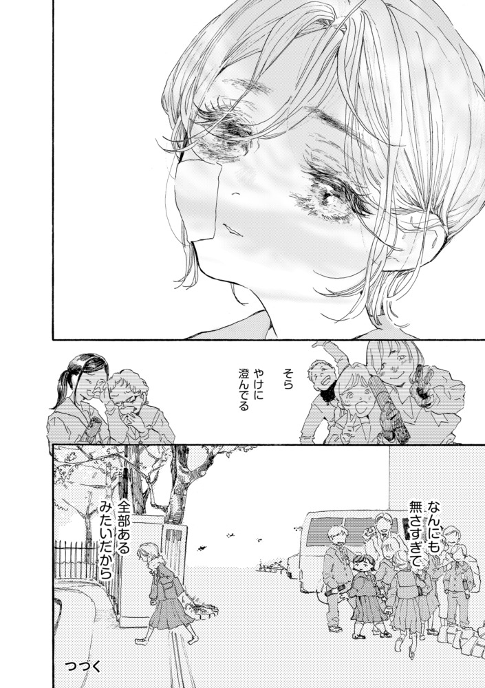 あの子みたいに、生きてみたかった──。引っ込み思案な中学生・まふゆと、学校中の人気者の親友・美也子。あの日の教室で、同じ痛みを抱えるふたりが交差する。マンガ『永遠の寂しい時間』がXで話題を呼んだ気鋭の作家・大越早苗(@_i_sne)が描くちょっぴりビターな青春譚。