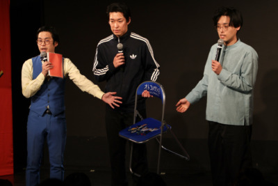 カミムラ「『キングオブコント』優勝して、『月笑』を休まず3連覇して、4連覇に向けて来年もがんばるって感じです。(『キングオブコント』は)コントやってるサルベース、ハマノとヘンミ、群青団地に抜かれないように。まず向こうが先に落ちることが前提」
