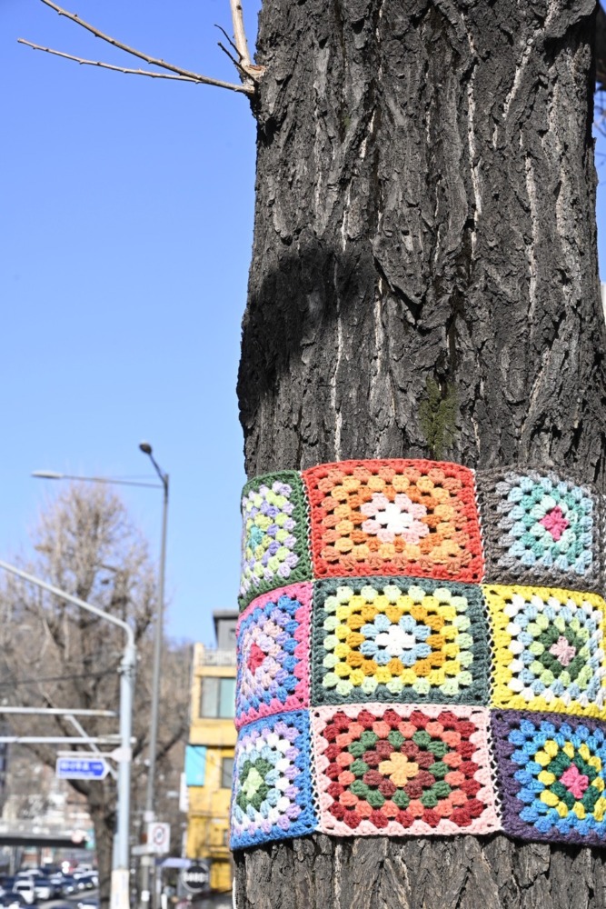 韓国の木にこんな編み物が巻かれていて