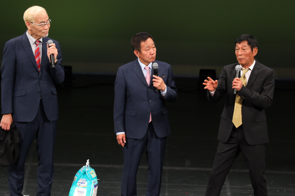 もちろん阪神・巨人も漫才を披露。50年積み上げてきた経験と技術を存分に発揮し、会場を沸かすだけでなく、阪神が落語、巨人が自身の持ち歌「男の子守唄」「夢浪漫」を熱唱するなど、それぞれの魅力も十二分に味わえるソロコーナーも設けられた。