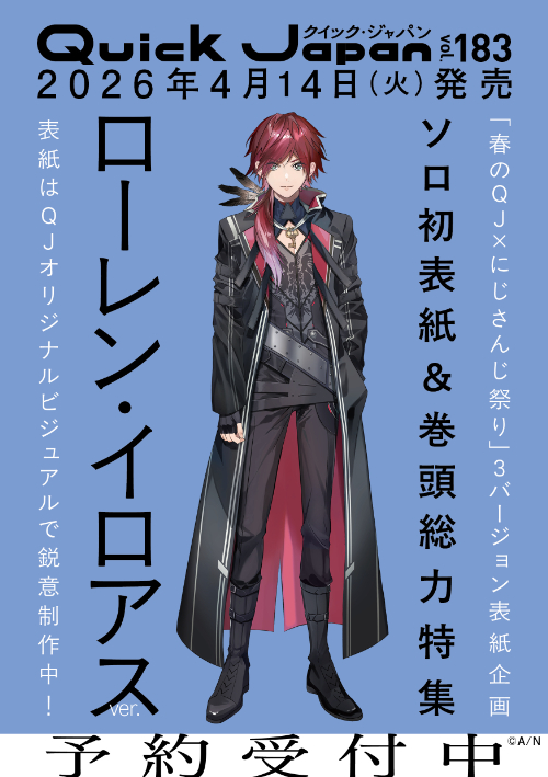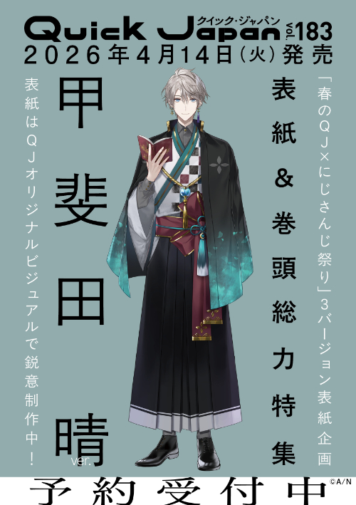 太田出版が発行する総合カルチャー誌『Quick Japan』vol.183(2026年4月14日発売)では、にじさんじ所属のVTuber、甲斐田晴、ローレン・イロアス、3SKMの3組がそれぞれ表紙&巻頭特集を飾る3バージョン同時展開企画「春のQJ×にじさんじ祭り!」を実施する。