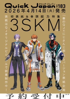 太田出版が発行する総合カルチャー誌『Quick Japan』vol.183(2026年4月14日発売)では、にじさんじ所属のVTuber、甲斐田晴、ローレン・イロアス、3SKMの3組がそれぞれ表紙&巻頭特集を飾る3バージョン同時展開企画「春のQJ×にじさんじ祭り!」を実施する。