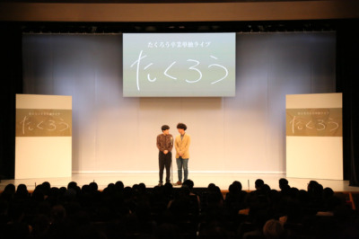 4月から活動拠点を東京へ移す『M-1グランプリ』王者・たくろう(赤木裕、きむらバンド)が3月15日(日)、所属する大阪・よしもと漫才劇場で『たくろう卒業単独ライブ「たくろう」』を開催した。その注目度の高さからチケットは即完売、立見席まで満員に!
