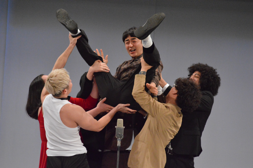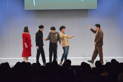 個性豊かな登場人物がそろったところで、ネタの続きとなるホームパーティーのシーンが描かれ、予想できない展開へと発展する。最後にはなぜか少人数に胴上げされ、「怖い! おろしてよー!」と怯える赤木の姿に客席は大爆笑に包まれた。