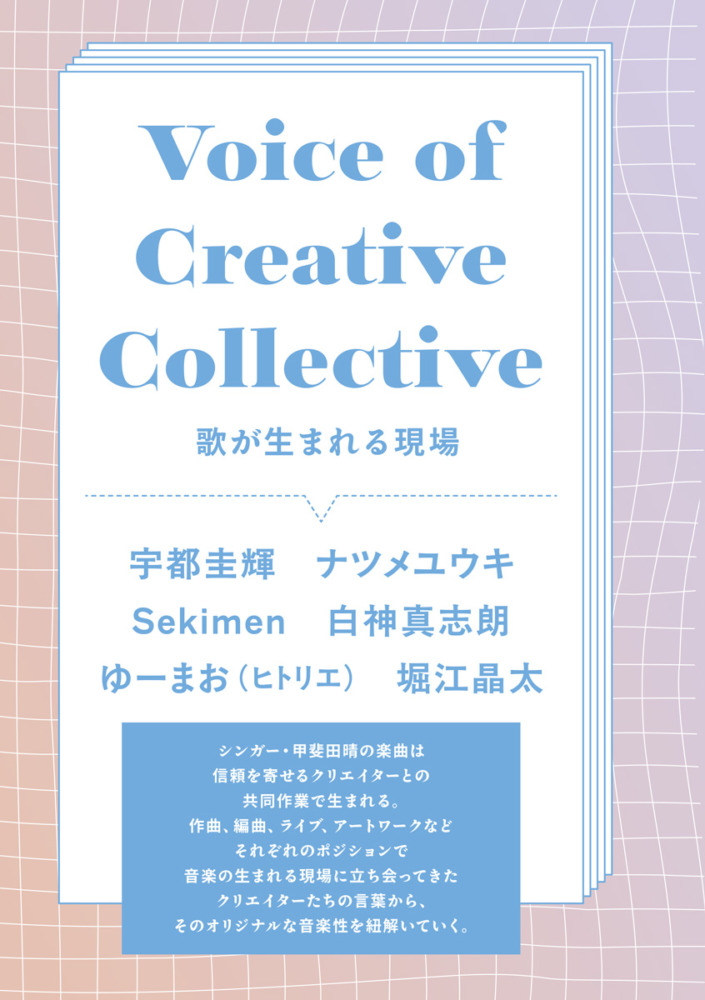 さらに「Voice of Cretive Collective」として、甲斐田の音楽活動にかかわるクリエイターたちのインタビュー企画も掲載。宇都圭輝、ナツメユウキ、Sekimen、白神真志朗、ゆーまお(ヒトリエ)、堀江晶太の6人が間近で見てきたアーティスト・甲斐田晴の魅力を語る。