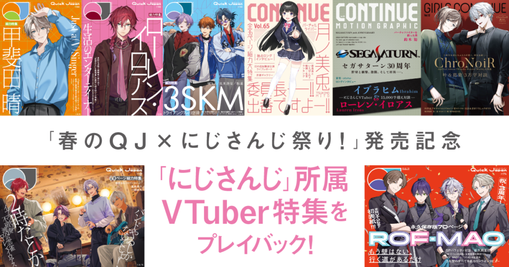 本記事では3バージョンのコンテンツ紹介に加え、過去に『Quick Japan』の表紙に登場したにじさんじ所属のVTuberのバックナンバーや姉妹誌『CONTINUE』で特集されたバックナンバーも一気におさらい。