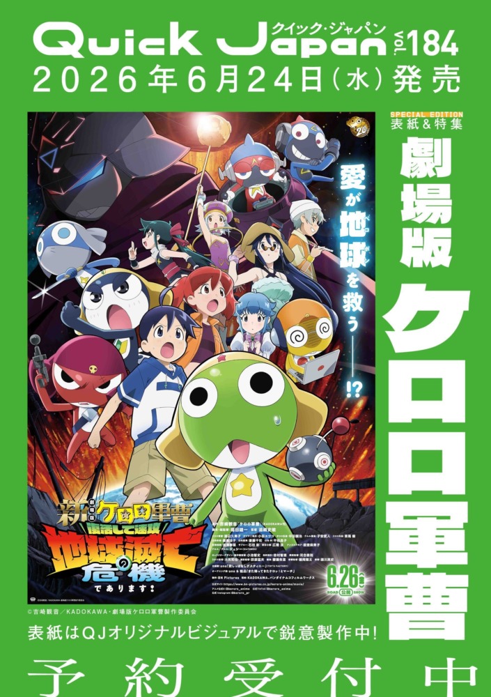 アニメ放送20周年『新劇場版☆ケロロ軍曹』表紙&特集決定! オリジナル描き下ろしビジュアル制作中 (画像ギャラリー 1/3) 前の画像 記事トップへ 次の画像 前の画像 次の画像 この記事の画像(全3枚) #ケロロ軍曹#映画 この記事が掲載されているカテゴリ MANGAMOVIENEWS 関連記事 【絵コンテ公開】興収12億突破『新劇場版 銀魂 -吉原大炎上-』話題の“女装”は空知英秋のアドバイス!?【安藤尚也監督×前川貴史プロデューサー対談】 映画『銀魂』特集&描き下ろしイラスト公開!『Quick Japan』SPECIAL EDITION版カバーにポップコーン頬張る坂田銀時が登場【『新劇場版 銀魂 -吉原大炎上-』公開記念】 アニメ放送記念!大ヒット『銀魂』の学園ストーリー『3年Z組銀八先生』が『Quick Japan』SPECIAL EDITION版の表紙カバー&特集に決定 鈴木伸之「好き」に勝てるものはない。ゴルフとウイスキーの時間で見えた“大人の余裕” HARPER'S CROSSING ~I.W.HARPERとともに語る「好きを、貫く。」~:PR Written by Quick Japan編集部 他の記事も読む